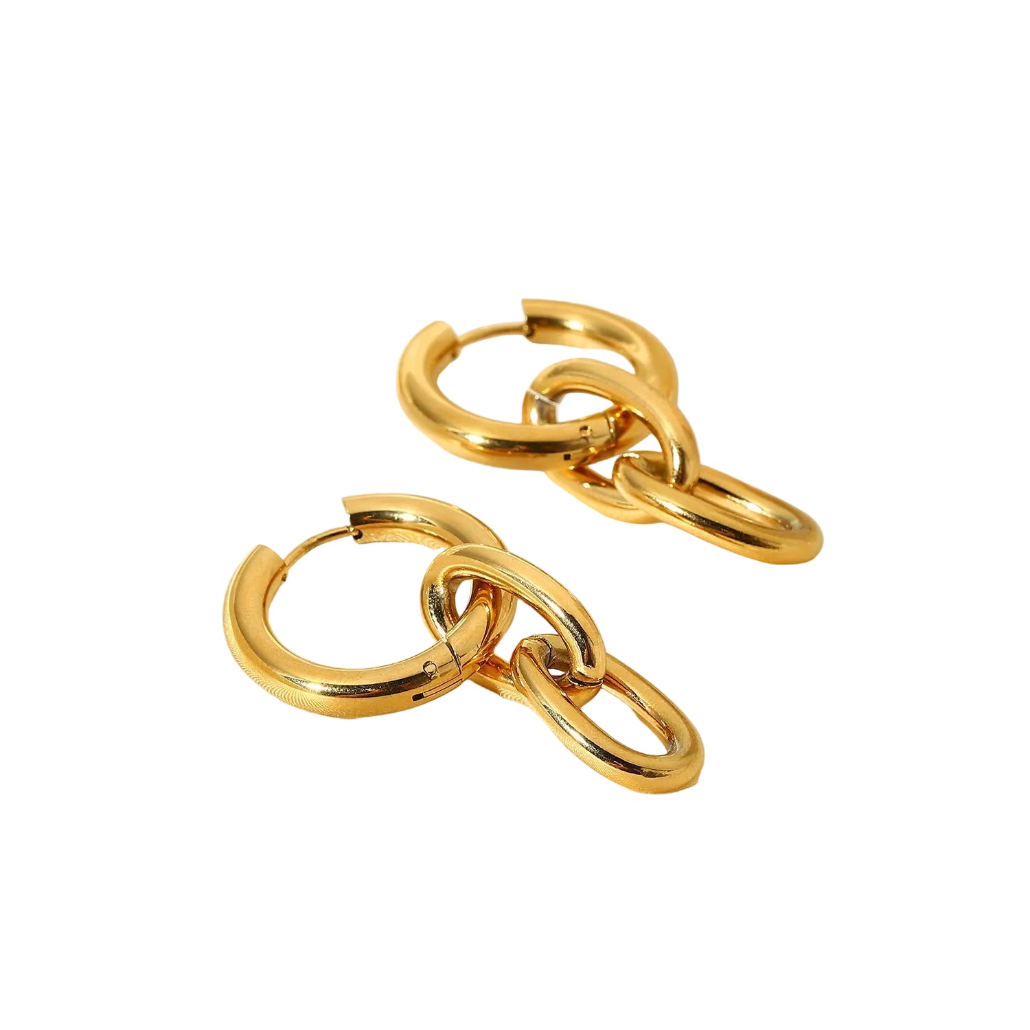 Estos aretes de aro gruesos convertibles de oro de 14 quilates representan una sofisticada inversión en diseño de joyería versátil. Diseñados con acero inoxidable y galvanoplastia de oro de 14 quilates de primera calidad, ofrecen durabilidad y una estética refinada. El innovador sistema de eslabones desmontables proporciona flexibilidad funcional, permitiéndole reconfigurar sus aretes para adaptarse a diferentes ocasiones y preferencias de estilo. Con una longitud total de 47,98 mm y un diámetro de aro considerable de 23,9 mm, estas piezas llaman la atención sin comprometer su portabilidad: su peso ligero de 19,4 g garantiza comodidad durante largos periodos. Su perfil grueso equilibra la audacia contemporánea con la elegancia atemporal, convirtiéndolos en una adición esencial a cualquier joyero exigente.